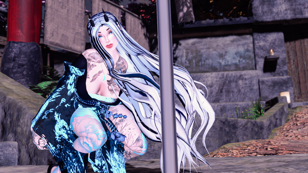 Ryoko the ice dragon and mate to Ryoma. This lethal beauty will mesmerize you with her looks and take you out with her weapons if you mess with those she calls her own. Ryoko has ice particles, full body smoke, DPS and Gogo Loco. Full Body Tracking Ready
