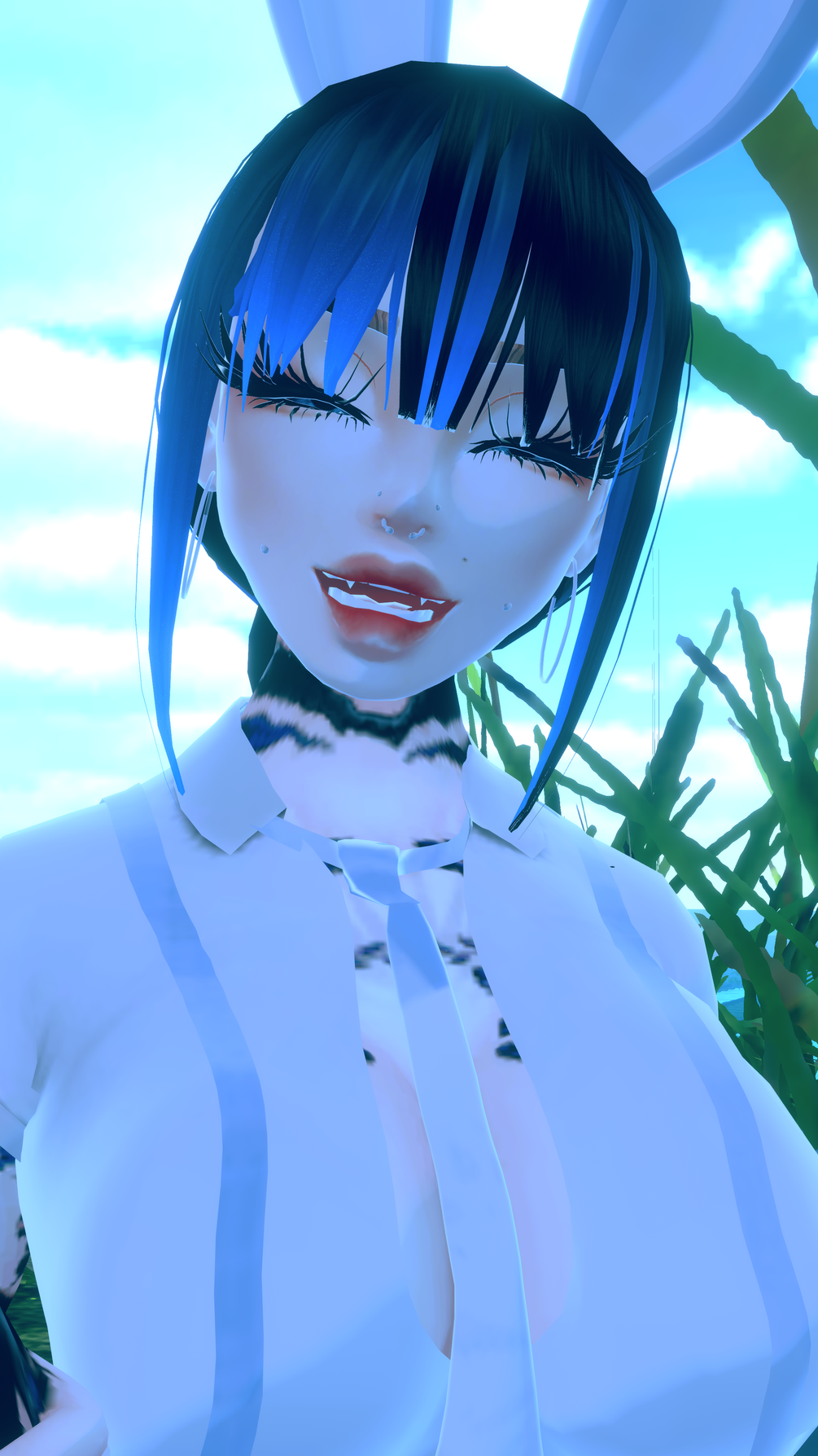 - Hair, bunny ears and tail